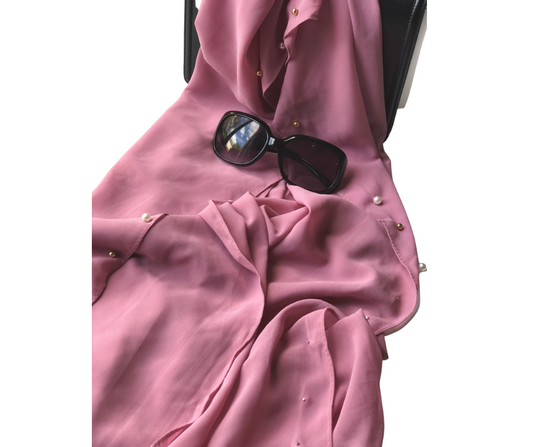 BEADED CHIFFON PLAIN SCARF/HIJAB - PINK