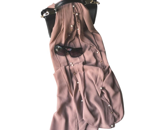 BEADED CHIFFON PLAIN SCARF/HIJAB - TEA PINK