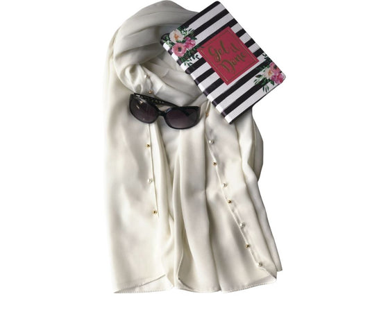 BEADED CHIFFON PLAIN SCARF/HIJAB - PEARL WHITE