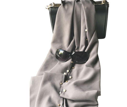 BEADED CHIFFON PLAIN SCARF/HIJAB - GREY