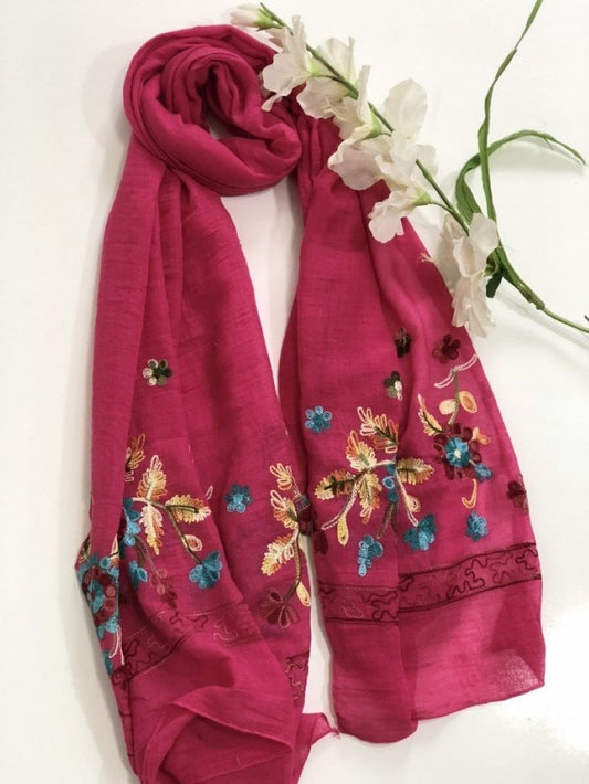 Embroidered Cotton Scarf/Hijab-Light Pink