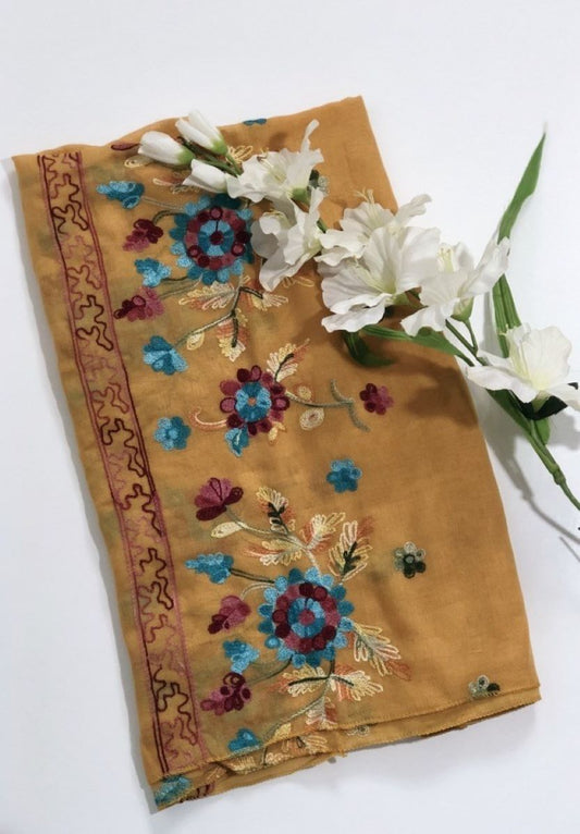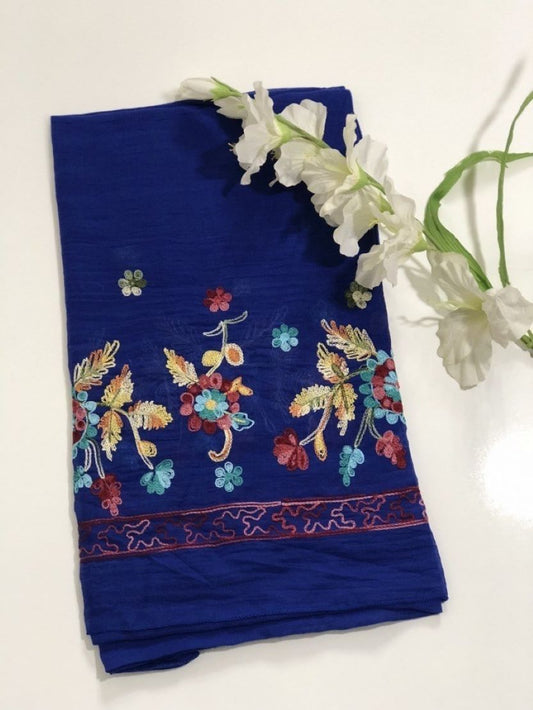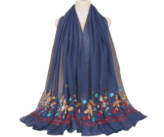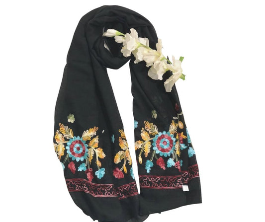 Embroidered Cotton Scarf/Hijab- Charcoal Grey