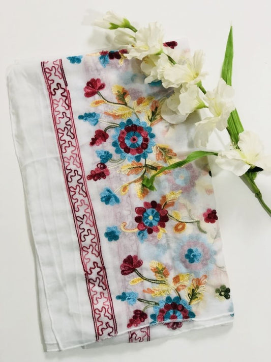 Embroidered Cotton Scarf/Hijab-LIGHT GREY