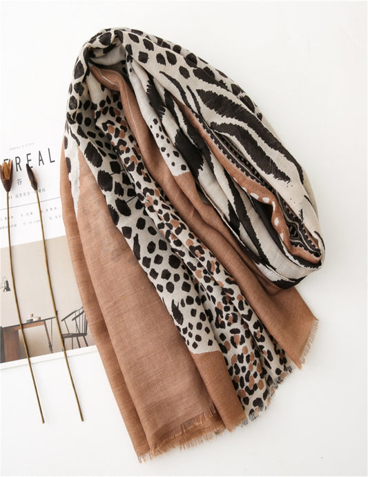 Tiger Printed Cotton/ Viscose Scarf For Women