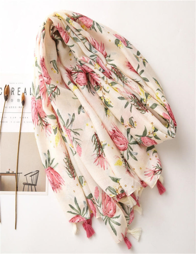 This sophisticated material is a cellulose airy fiber, soft & light printed scarf that fits for any age and occasion, easy to wrap due to its lightweight texture, can be use for everyday style. Available and ready to ship.